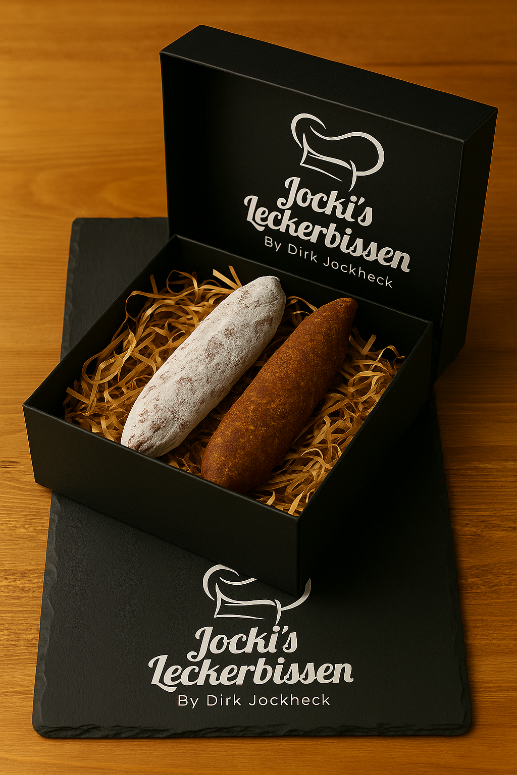 Erlebe ein außergewöhnliches Feinkost-Duo, das selbst anspruchsvolle Genießer begeistert: unser exklusives Fuet mit Ente und die aromatisch-milde Fuet mit Ziegenkäse. Zwei seltene Premium-Sorten, traditionell gereift und handverlesen – zusammengestellt zu einem eleganten Genuss-Set, das in dieser Form nur bei Jocki’s Leckerbissen erhältlich ist.