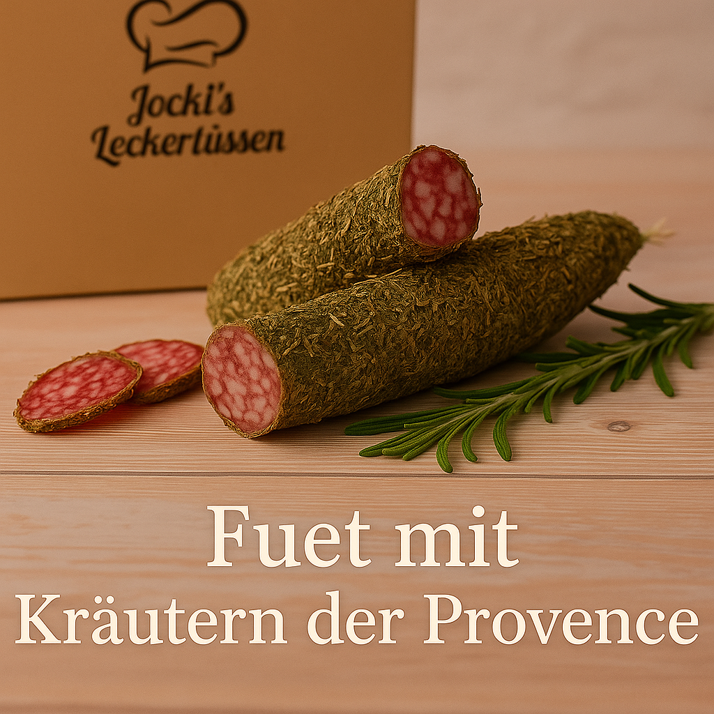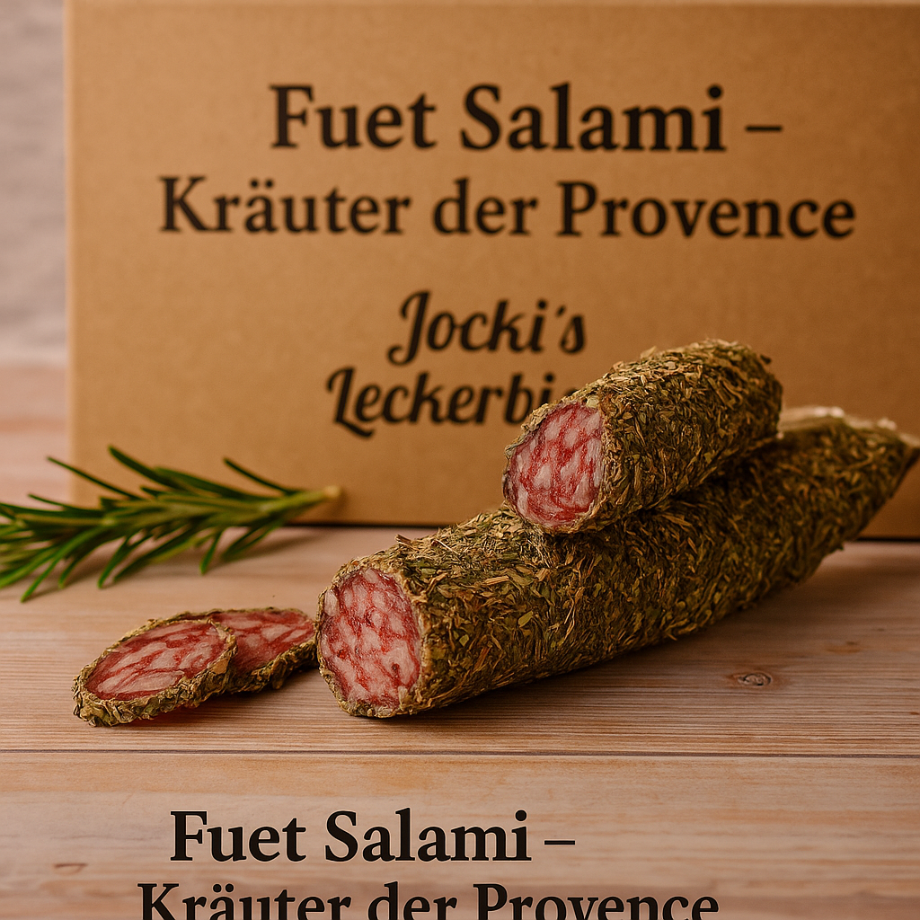 Ob pur genossen, zu mildem Käse oder zu einem Glas kräftigen Rotwein – die Kräuter-Fuet von Jocki’s Leckerbissen ist der Inbegriff mediterraner Lebensfreude.